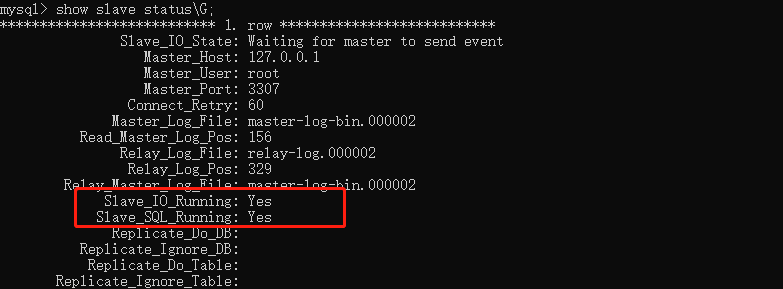 Slave_IO_Running: Yes, Slave_SQL_Running: Yes,两个线程必须为 YES