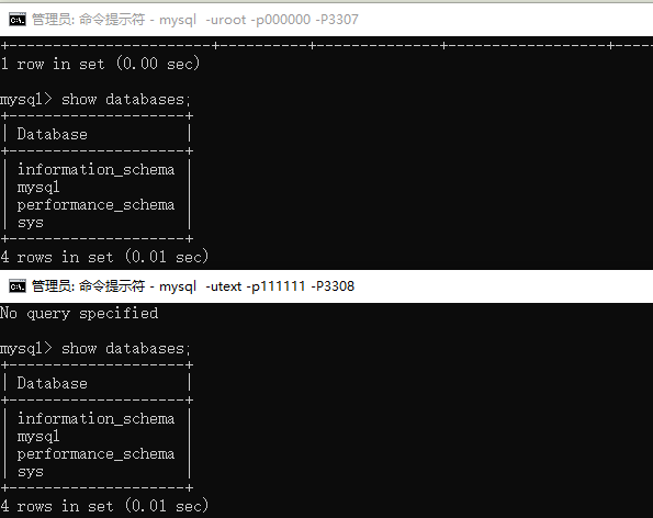 mysql -uroot -p -P3307 (指定端口) |