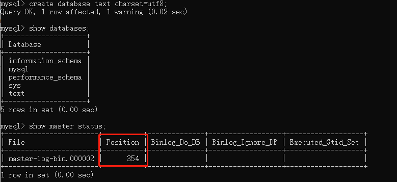 主服务器上新建一个数据库text