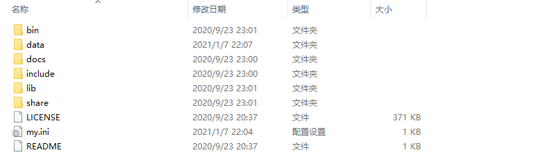 - 在解压后的文件夹下新建 my.ini 文件。内容参考如下: